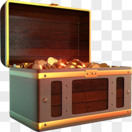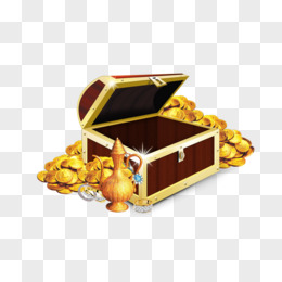 卡通手绘游戏风格装满金币的大宝箱免抠元素