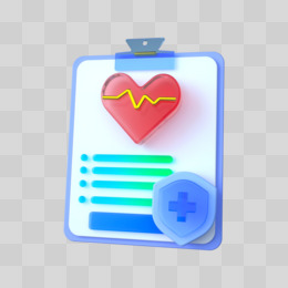 C4D立体玻璃质感医疗保险图标病历免抠元素