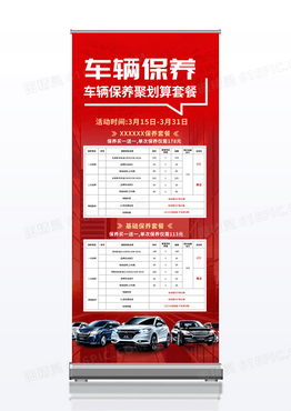 红色大气车辆保养聚划算套餐促销宣传展架易拉宝