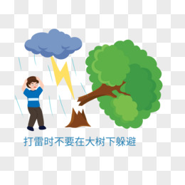 夏季避雷打雷防雷防范不在树下避雨插画素材