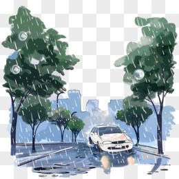 暴雨狂风插画极端天气免抠元素