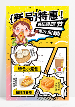 黄色凯斯哈林风新品特惠早餐美食宣传海报
