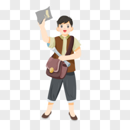 手绘卡通水墨风格民国报童卖报纸青年素材