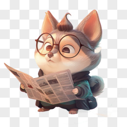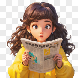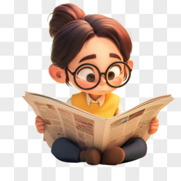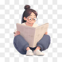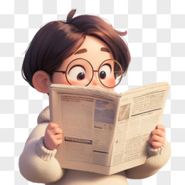 3D立体风格坐在沙发上阅读报纸的可爱男孩免抠元素