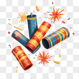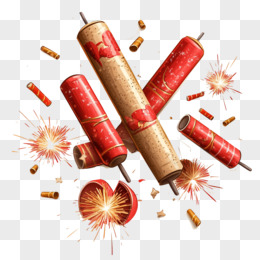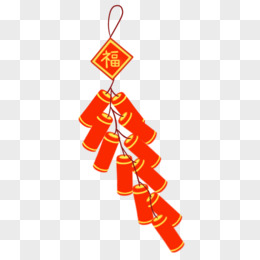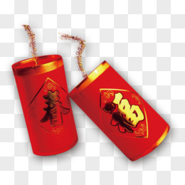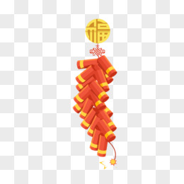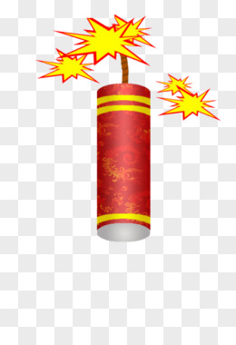 卡通风新年元素一个小人抱着三个爆竹免抠元素