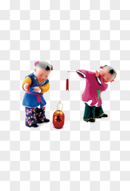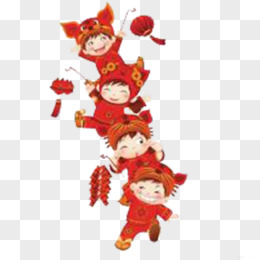 手绘卡通男娃女娃点炮竹素材免抠元素
