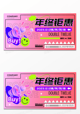 多巴胺孟菲斯创意双12年终钜惠促销打折活动展板双十二