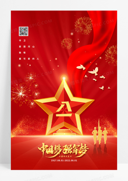 红色大气八一建军节海报81建军95周年海报