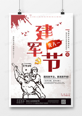 手绘卡通新四军军人手拿旗帜冲锋免抠素材