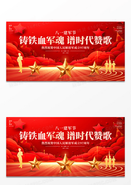 红色烫金风大气八一建军节宣传展板