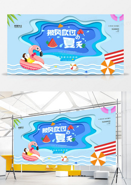 小清新剪纸风被风吹过的夏天你好夏天宣传展板