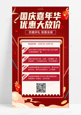 彩带红色背景喜庆大气国庆节活动宣传手机宣传海报