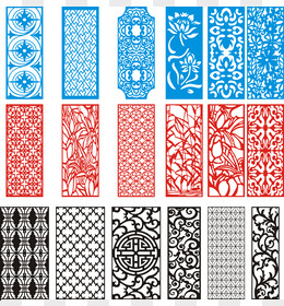 中国古建筑 传统 剪纸 中国红 透明背景