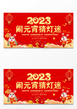 2023闹元宵猜灯迷红色喜庆背景展板