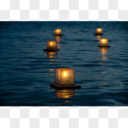 中元节夜晚放荷花灯许愿场景元素