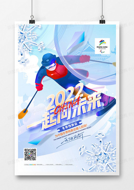 卡通手绘插画噪点风冬残奥会滑雪元素