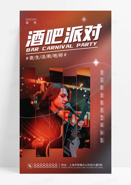 渐变色简约风格酒吧派对手机宣传海报