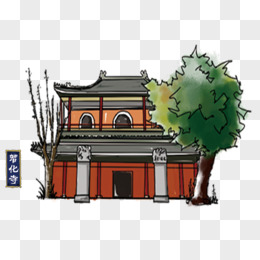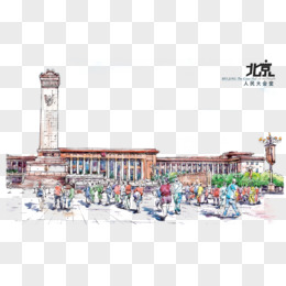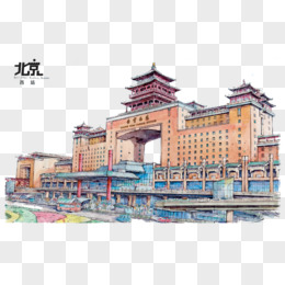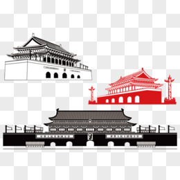 一组国潮风手绘北京建筑天坛鼓楼永定门太庙装饰免抠元素合集