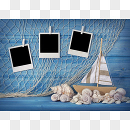 贝壳木船与渔网