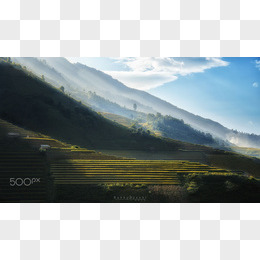 绿色山峰田地蓝天白云海报背景