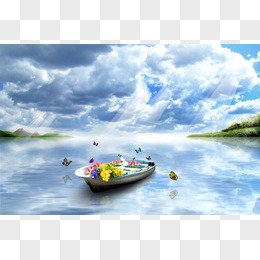 蓝天白云船只背景素材大图背景