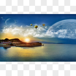 蓝天白云海岛矢量免抠背景