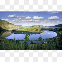 蓝天白云水中山海报背景