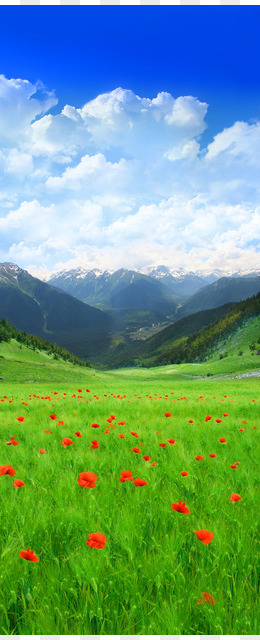 绿色山庄蓝天白云海报背景