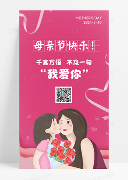 玫红卡通母亲节快乐母亲节ui母亲节ui手机海报