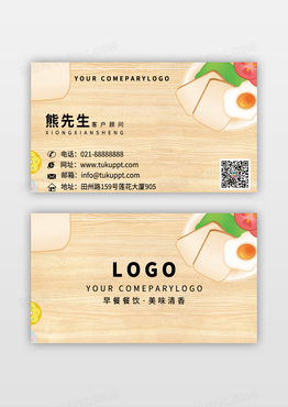 木板鸡蛋大气简约时尚餐饮早餐店面名片设计