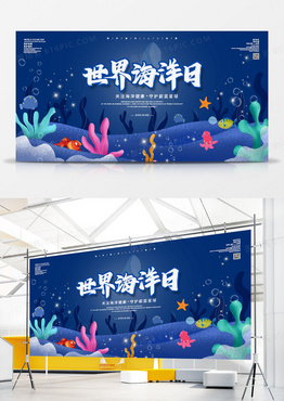 蓝色梦幻世界海洋日保护海洋宣传展板