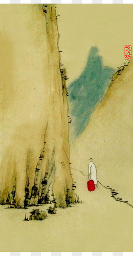 水墨画山间远行的人海报背景