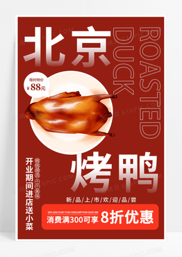 红色简约创意北京烤鸭餐饮美食宣传活动海报
