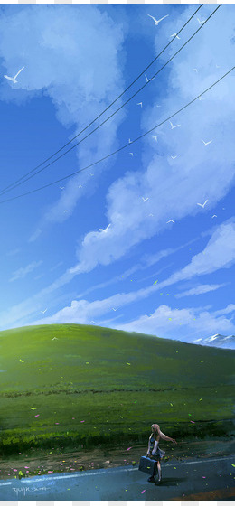 蓝色海边女性人物文案排版文字效果矢量背景素材
