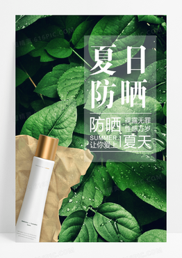 高清绿叶背景夏日防晒海报