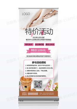 银色简约背景养生SPA特价优惠活动促销展架养生足疗展架易拉宝