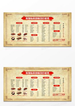 棕色中国风卤菜价格表展板卤菜价格表价目表
