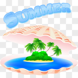 卡通夏日小岛贝壳