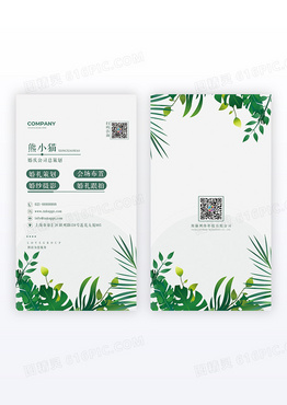 北欧植物鲜花极简竖版名片设计