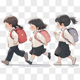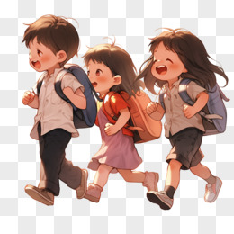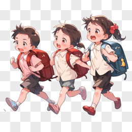 卡通手绘免抠小女孩小男孩讨论场景素材