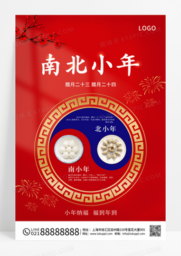 红色大气2024南方小年北方小年宣传海报小年海报