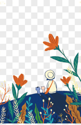 手绘插画风女孩拥抱大自然背影免抠元素