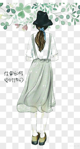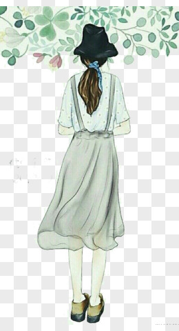 手绘新中式国风旗袍美女背影侧身复古免抠插画元素
