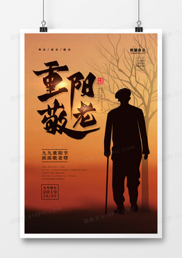 橙色剪影一对老年夫妇牵着手走路背影免抠元素