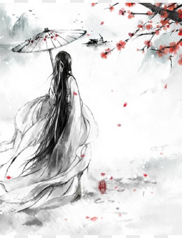 手绘唯美女孩背影拥抱自然素材