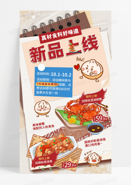 简约笔记手账风餐饮美食本地生活新品宣传手机宣传海报