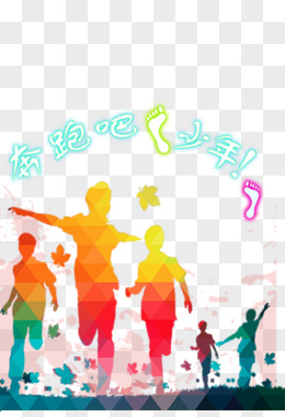 水彩奔跑人物光影效果元素