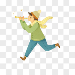 吹着笛子奔跑的孩子