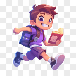 手绘卡通插画风女孩抢到回家的票开心奔跑免抠元素