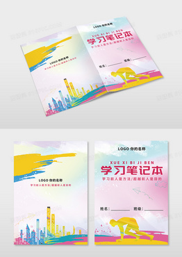 水彩卡通奔跑热血奋斗学习笔记本封面设计